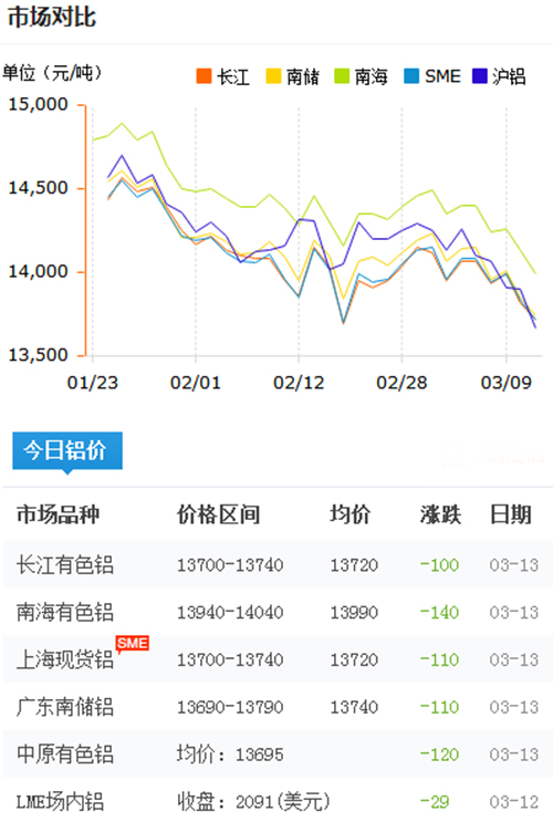 鋁錠價(jià)格今日鋁價(jià)2018-3-13