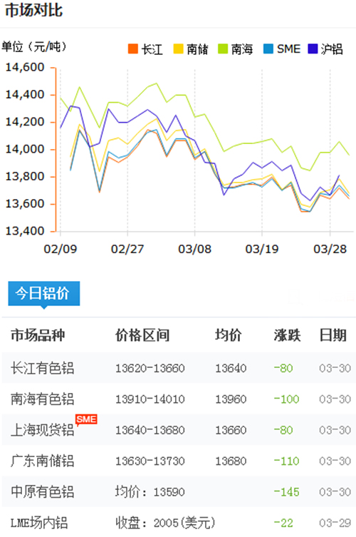 鋁錠價(jià)格今日鋁價(jià)2018-3-30